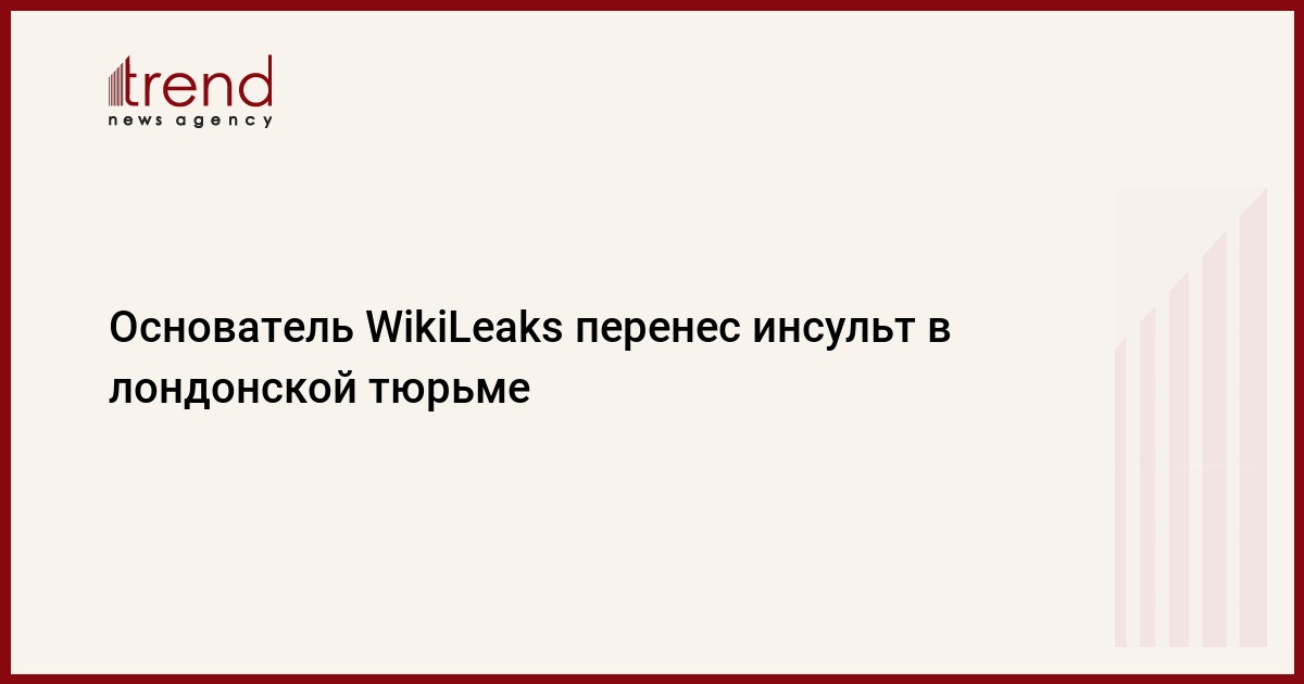 Основатель организации WikiLeaks («Викиликс») Джулиан Ассанж перенес инсульт в лондонской тюрьме Белмарш. Об этом его невеста Стелла Моррис рассказала газете Daily Mail, передает Trend со ссылкой на Lenta.ru.