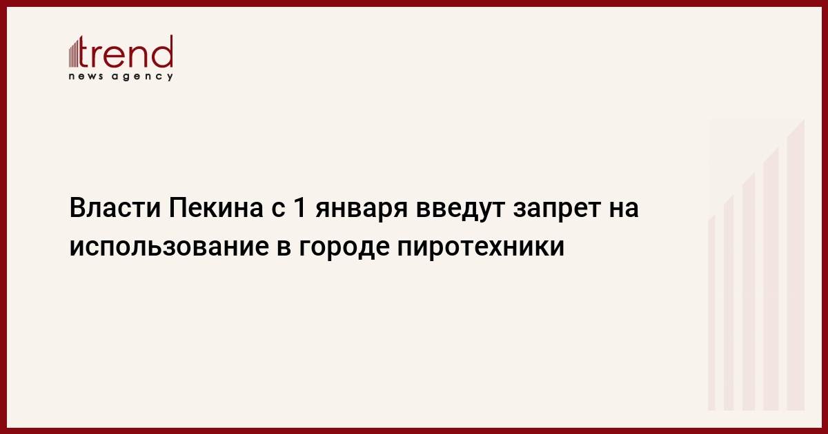 Администрация китайской столицы с 1 января вводит полный запрет на использование фейерверков, петард и прочей пиротехники на территории всего города. Об этом сообщила в пятницу пекинская газета "Синьцзинбао", передает Trend со ссылкой на ТАСС.