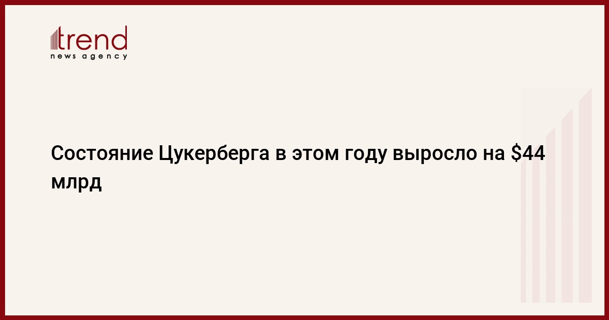Состояние главы компании Meta Марка Цукерберга выросло в этом году на $44 млрд, это самый быстрый рост капитала среди миллиардеров. Об этом сообщает агентство Bloomberg, передает Trend со ссылкой на ТАСС.