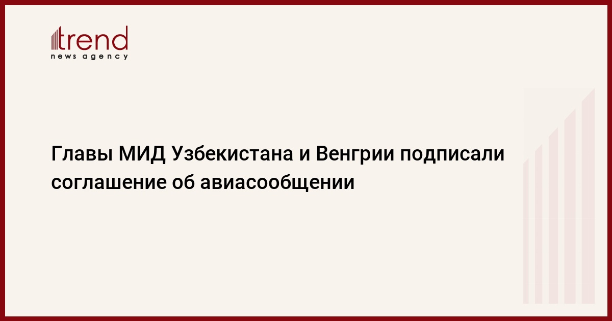 БАКУ /Trend/ - Министры иностранных дел Узбекистана и Венгрии, а именно Бахтиёр Саидов и Петер Сийярто, подписали соглашение в Будапеште об установлении регулярных авиационных связей между столицами двух стран. Эту информацию подтвердил глава МИД Узбекистана, Бахтиёр Саидов, передает Trend.