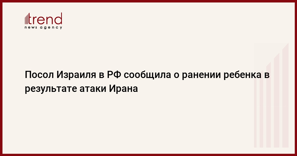 БАКУ /Trend/ - Ребенок в возрасте семи лет был ранен в результате атаки Ирана на территорию Израиля. Об этом сообщила ТАСС посол Израиля в РФ Симона Гальперин, передает Trend.