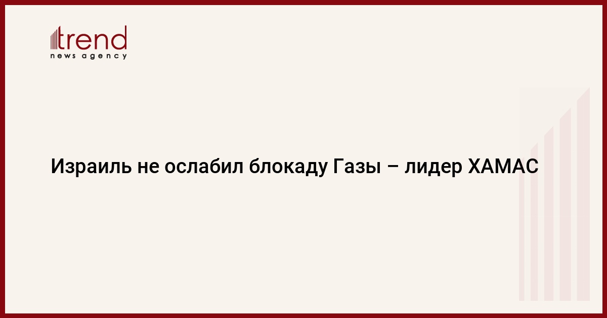 Лидер ХАМАС заявил о необходимости полностью снять блокаду с Газы и позволить иностранным гражданам посещать регион для оказания гуманитарной помощи.