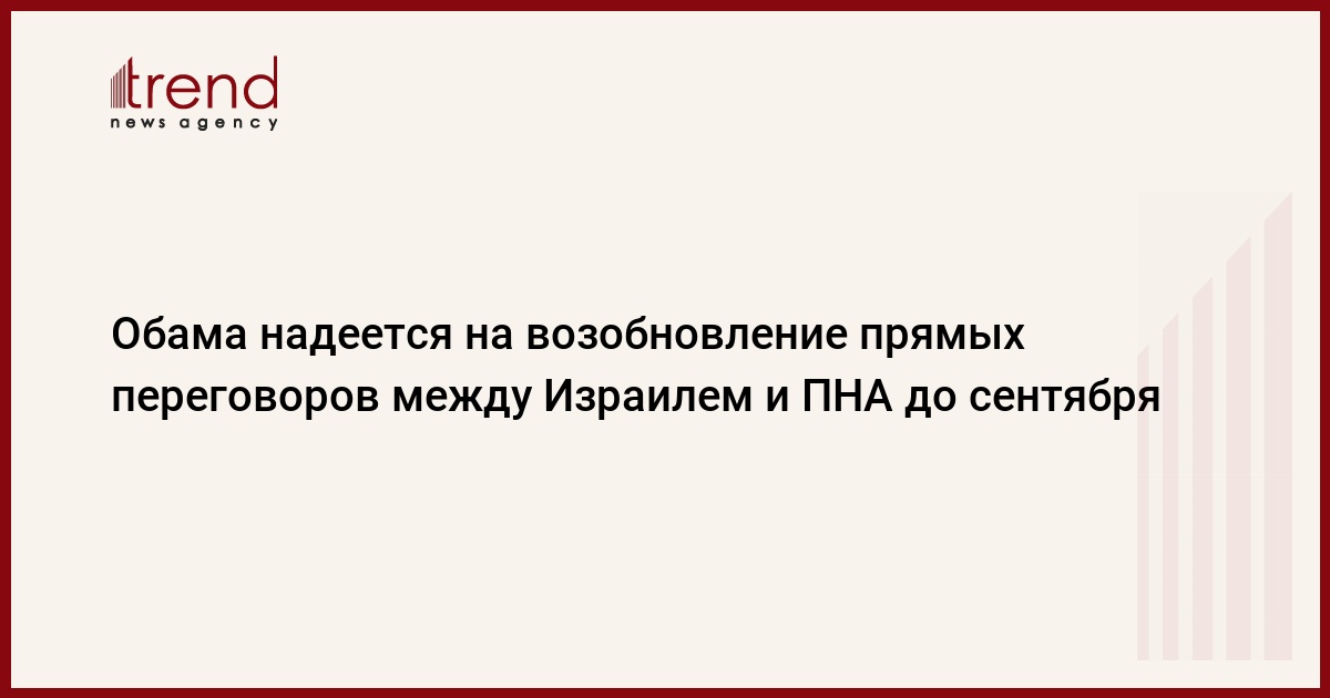 Президент США Барак Обама надеется, что прямые переговоры между Израилем и ПНА возобновятся до сентября текущего года, сообщает РИА Новости.