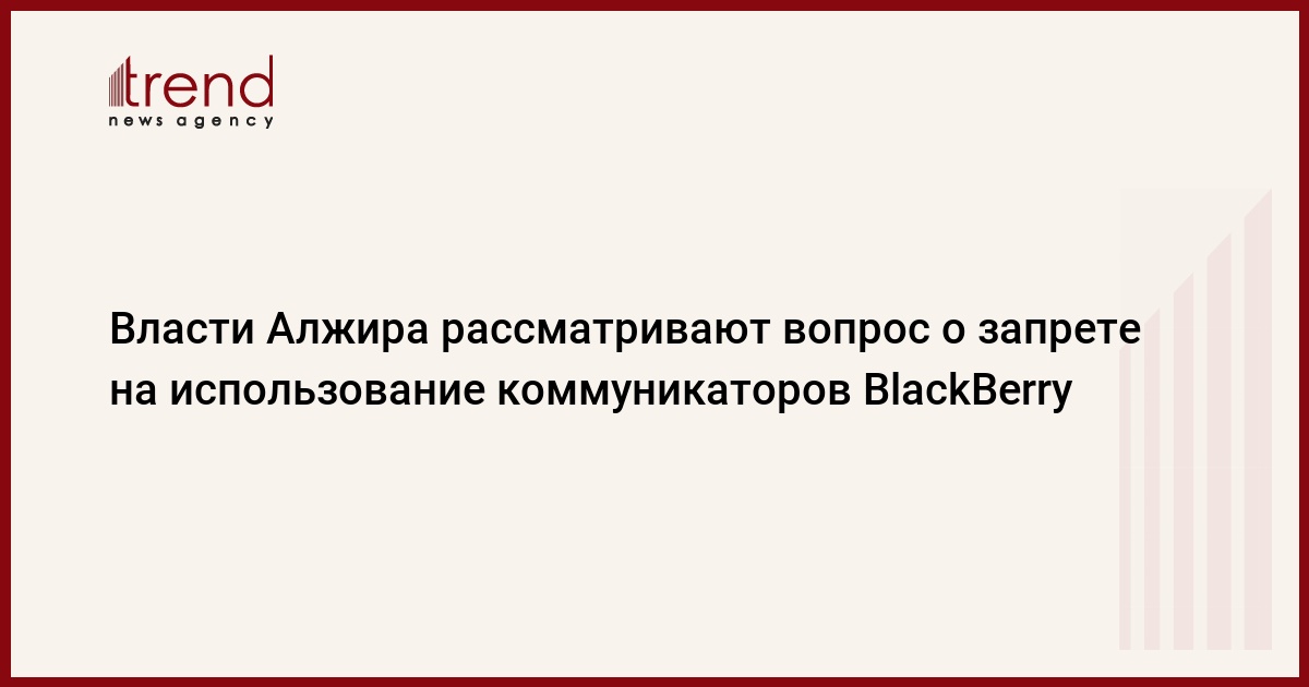Правительство Алжира вынесло на повестку вопрос по коммуникаторам BlackBerry - в случае, если выяснится, что их использование угрожает национальной безопасности, власти введут на них запрет, сообщает в пятницу агентство Рейтер со ссылкой на местные СМИ, которые цитируют заявление министра по телекоммуникациям Алжира.