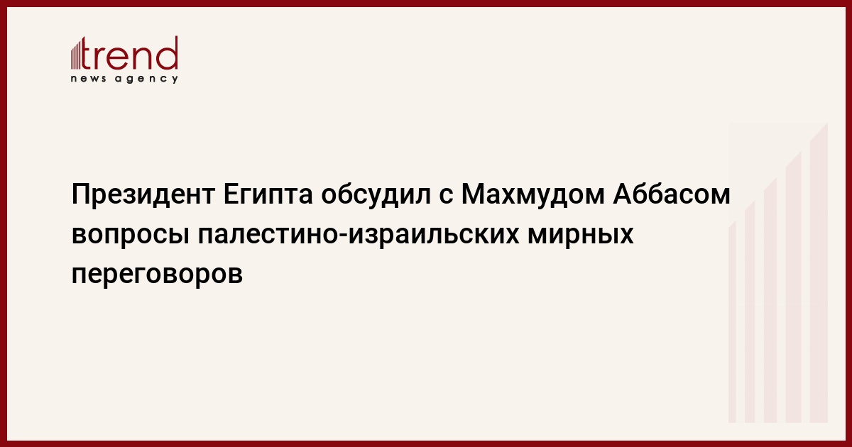 Президент Египта Хосни Мубарак встретился в четверг с председателем ПНА Махмудом Аббасом. Стороны обсудили последние изменения в палестино-израильских отношениях, в особенности прилагаемые всеми сторонами усилия по созданию условий для возобновления прямых палестино- израильских переговоров, сообщает Синьхуа.