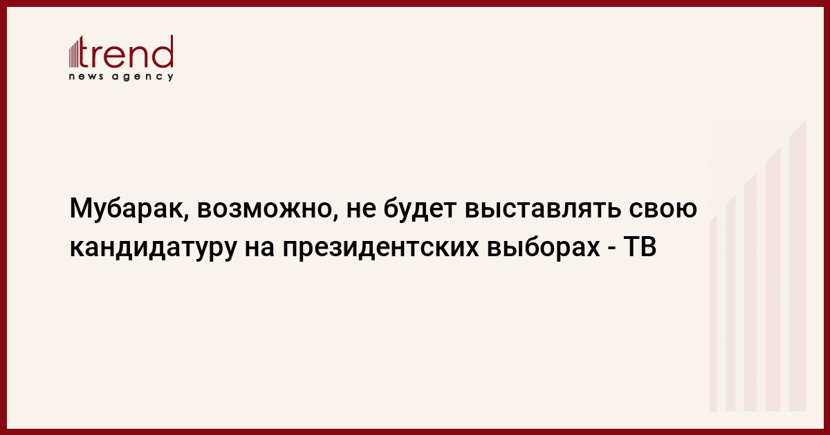 Президент Египта Хосни Мубарак возможно не будет выставлять свою кандидатуру на ближайших президентских выборах, которые, как ожидается, пройдут осенью 2011 года, сообщает спутниковый телеканал "Аль-Арабия".