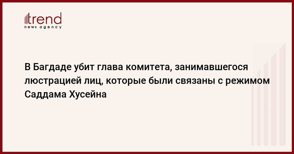 В столице Ирака, городе Багдад, убит глава комитета, занимавшегося выявлением лиц, которые были связаны с бывшим президентом Саддамом Хусейном, пишет РБК.