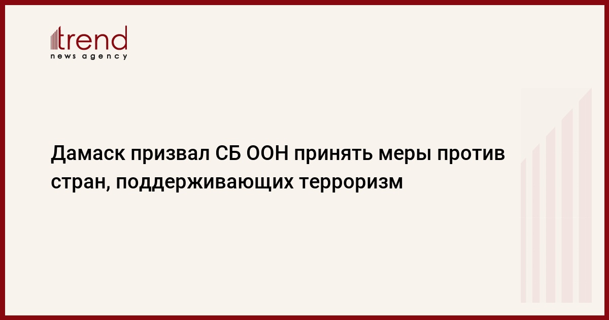 Министерство иностранных дел Сирии призвало в четверг Совет безопасности ООН принять меры против стран, организаций и СМИ, использующих терроризм как метод ведения политики или поощряющих его, сообщает РИА Новости.
