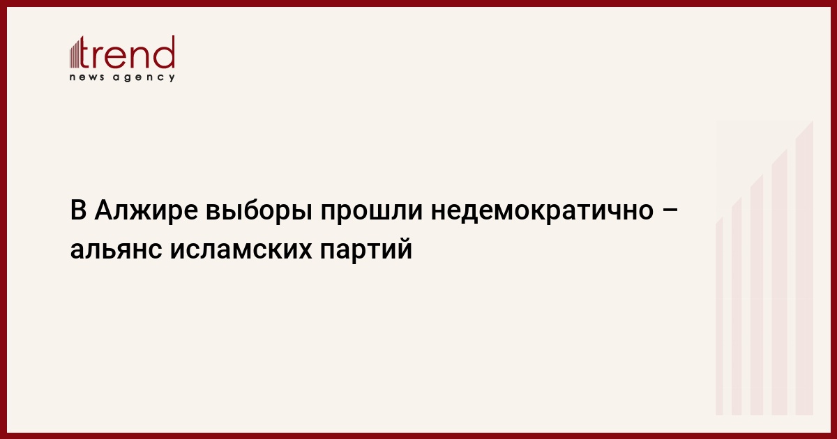 Состоявшиеся в Алжире парламентские выборы прошли недемократично и во время выборов были допущены серьезные нарушения, заявил альянс исламских партий "Зеленый Алжир", сообщает в субботу телеканал "Аль-Джазира".