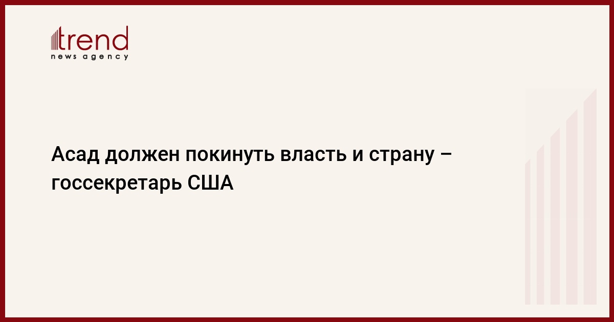 Президент Сирии Башар Асад должен отказаться от власти в Сирии и покинуть страну, сказала на пресс-конференции с главой МИД Турции госсекретарь США Хиллари Клинтон, передает в четверг турецкий телеканал NTV.