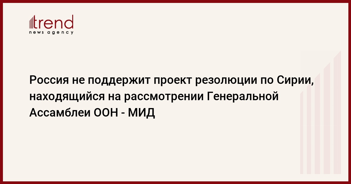 Россия не поддержит проект резолюции по Сирии, находящийся на рассмотрении Генеральной Ассамблеи ООН. Об этом говорится в комментарии департамента информации и печати МИД России, передает РБК.