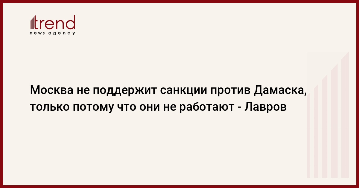 "Мы не поддерживаем санкции /против Сирии - прим.ТАСС/, потому они ничего не дадут, - подчеркнул глава МИД РФ. - В Сирии нужно, чтобы все внешние игроки, у которых есть влияние, использовали это влияние на ту или иную сирийскую сторону во благо, заставили всех сирийцев сесть за стол переговоров".
