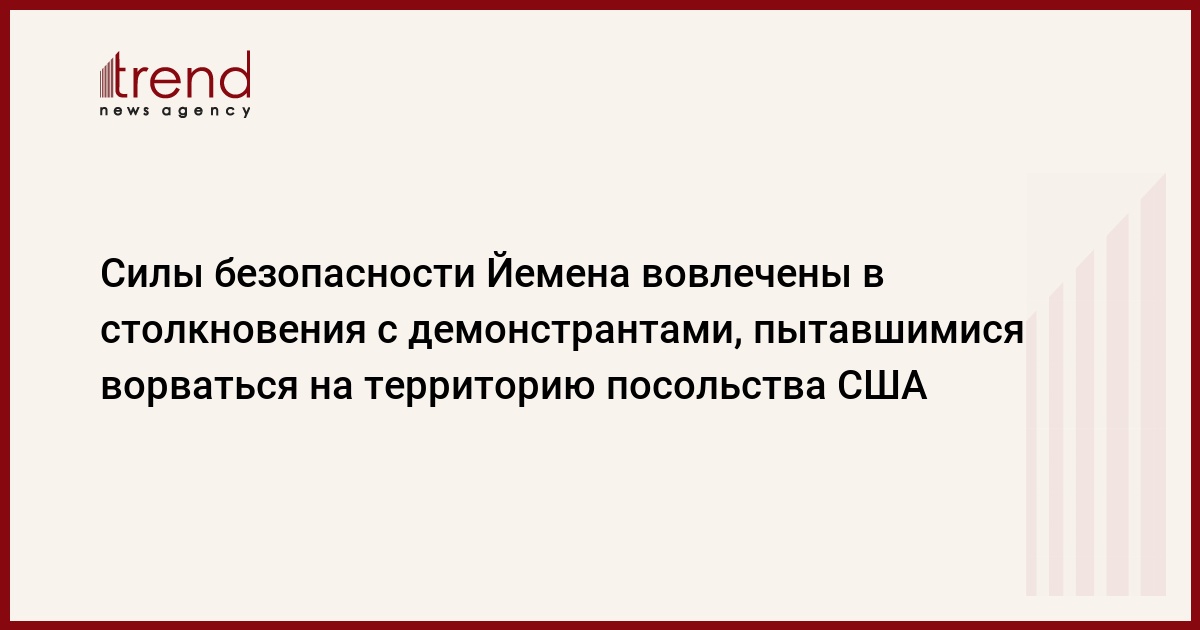 Силы безопасности Йемена в четверг были вовлечены в столкновения с демонстрантами, которые пытаются ворваться на территорию посольства США в Сане, передает Синьхуа.