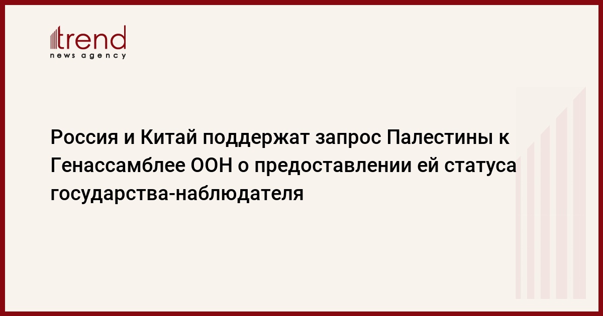 О готовности поддержать призыв ПНА к Генассамблее заявил и постоянный представитель КНР при ООН Ли Баодун. "Если будет запрос о предоставлении Палестине статуса государства-наблюдателя или же полноправного членства - мы его поддержим", - сказал он.