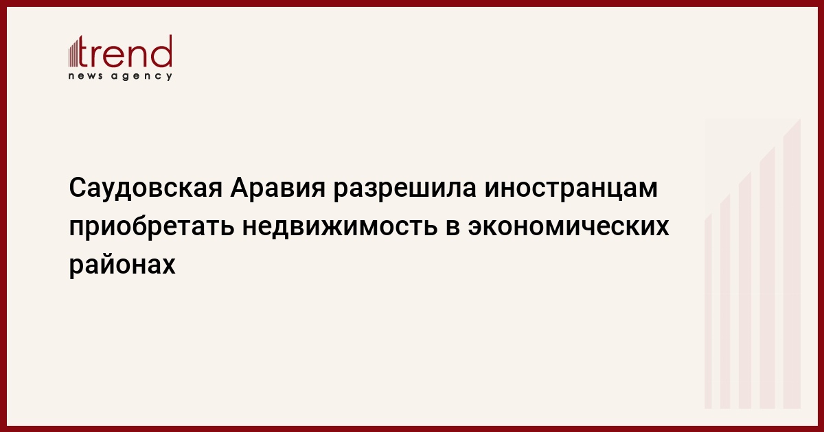 Саудовская Аравия разрешила иностранным гражданам приобретать недвижимость, но только в экономических районах, сообщает в пятницу саудовская газета "Эр-Рияд".