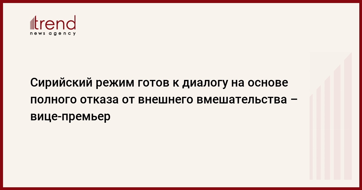 Правящий режим Сирии будет вести диалог не иначе, как на основе отказа от внешнего вмешательства и применения насилия, сказал в понедельник премьер-министр Сирии Кадри Джамиль в интервью телеканалу RT на арабском языке - "Русия аль-Яум".