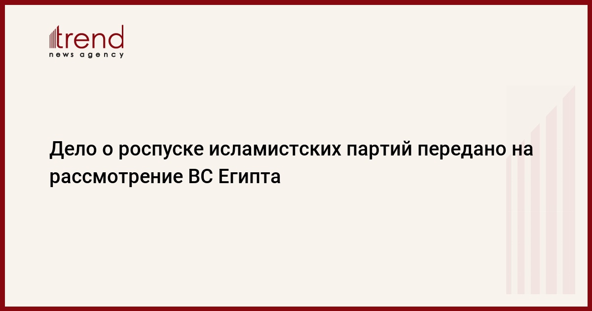 Высший административный суд Египта решил передать дело о незаконности создания и роспуске ведущих исламистских партий страны - Партии свободы и справедливости (ПСС) и "Ан-Нур" на рассмотрение коллегии Верховного суда, сообщил в субботу журналистам представитель административного суда.