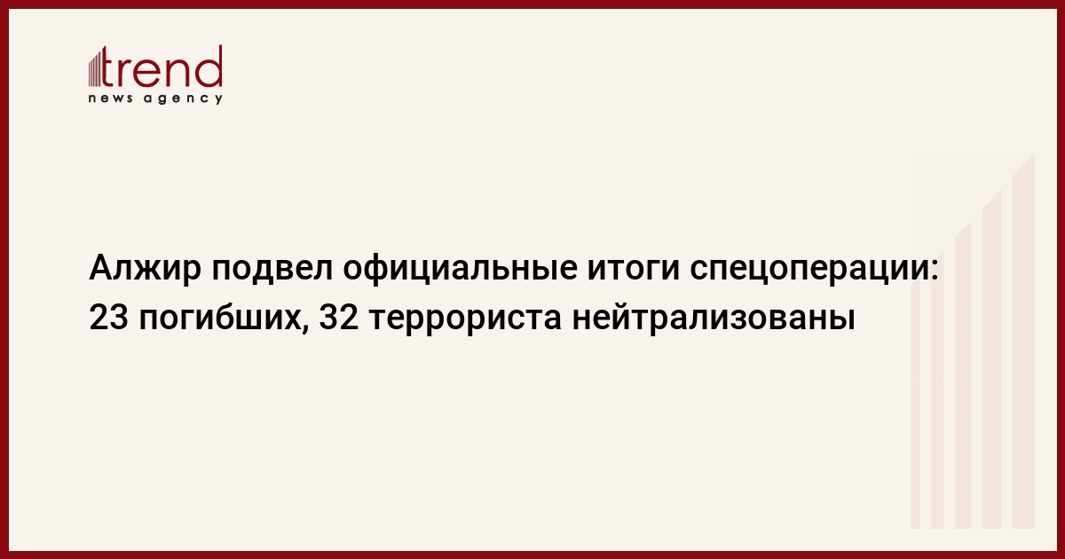 По меньшей мере 23 заложника погибли в результате нападения террористов на газовый комплекс близ города Ин-Аменас в пустыне на юго-востоке Алжира, сообщило в субботу вечером алжирское МВД. Операция армейского спецназа и жандармерии завершилась ликвидацией 32 террористов, которые перед смертью успели казнить пленников, сообщает РИА Новости.