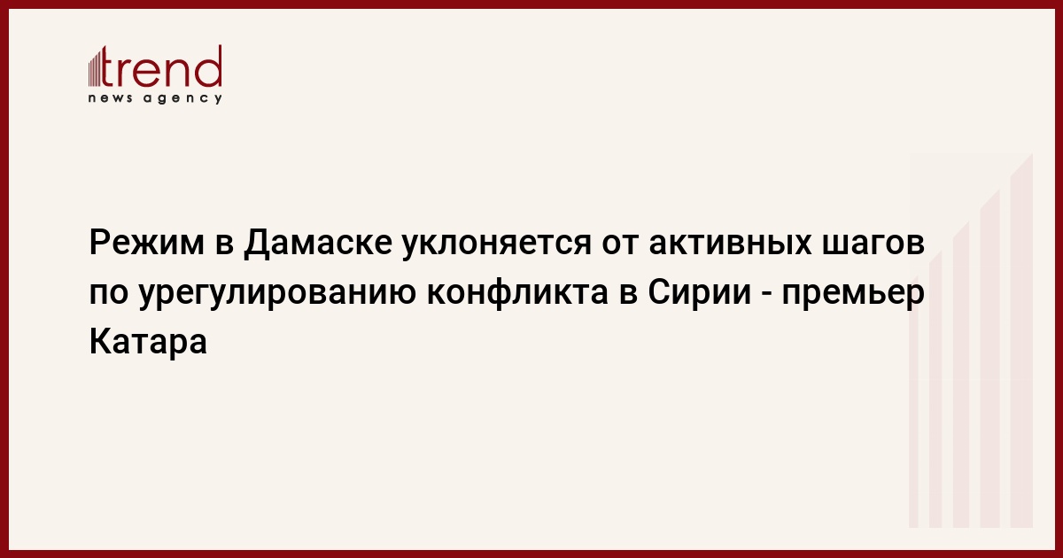 Правительство Сирии "проводит политику ухода от активных действий", направленных на урегулирование конфликта в стране, заявил в воскресенье премьер-министр и министр иностранных дел Катара Хамад бен Джасем Аль Тани на международной конференции по безопасности в Мюнхене, пишет ИТАР-ТАСС.