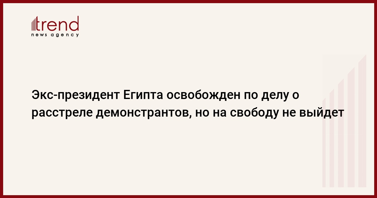 Египетский суд принял решение об освобождении из-под стражи бывшего президента Египта Хосни Мубарака по делу о гибели мирных демонстрантов в ходе революционных событий 2011 года, но это решение не позволит ему выйти на свободу, пишет в понедельник РИА Новости со ссылкой на местное телевидение.