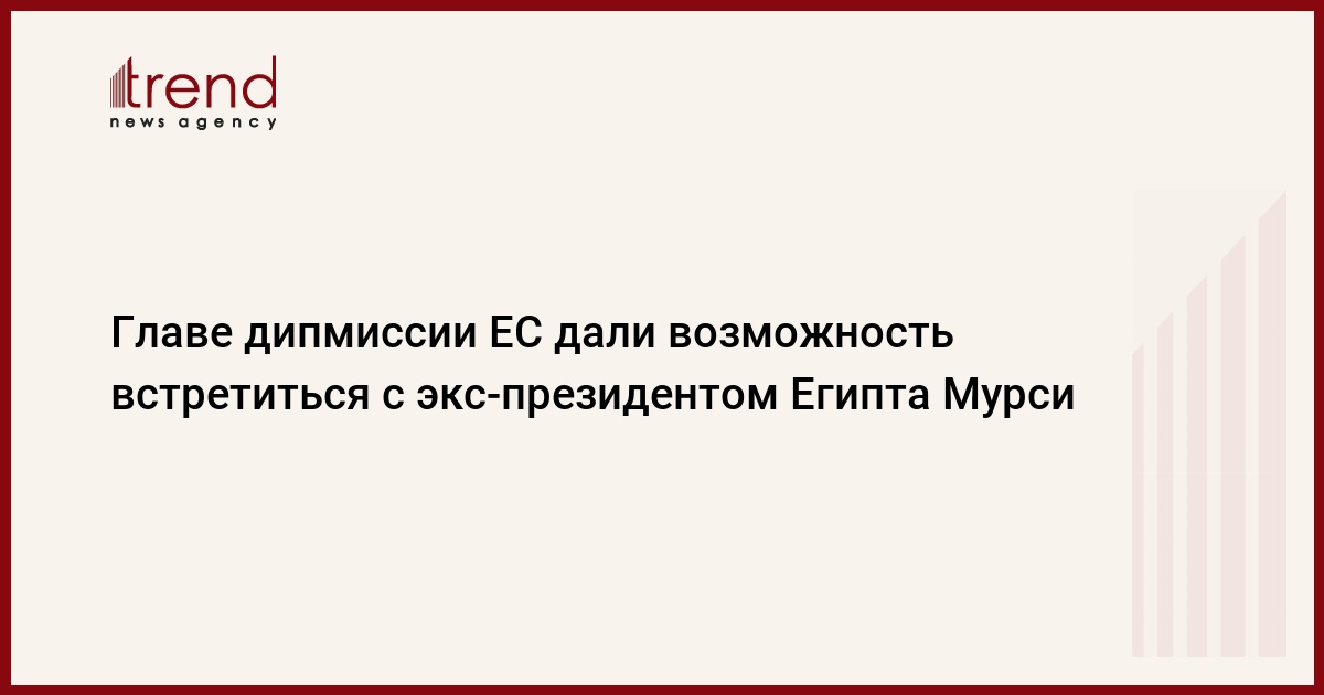 Верховный представитель по внешней политике и безопасности ЕС Кэтрин Эштон встретилась в понедельник вечером с низложенным президентом Египта Мухаммедом Мурси. В настоящее время он содержится на вилле под Каиром, принадлежащей одной из армейских структур, передает ИТАР-ТАСС.