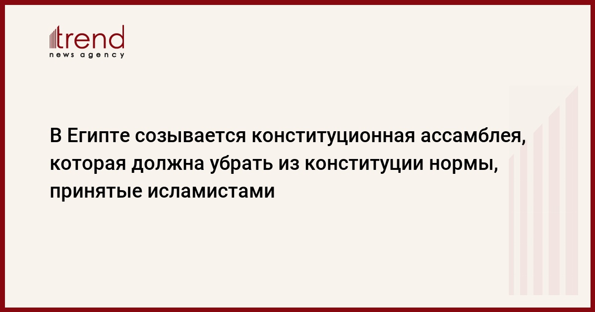 Поддерживаемое армией правительство Египта объявило о созыве конституционной ассамблеи, которая в течение 60 дней должна подготовить конституционные поправки для удаления исламистских статей, которые внесли в основной закон "Братья-мусульмане и другие радикальные исламистские партии, передает РБК.
