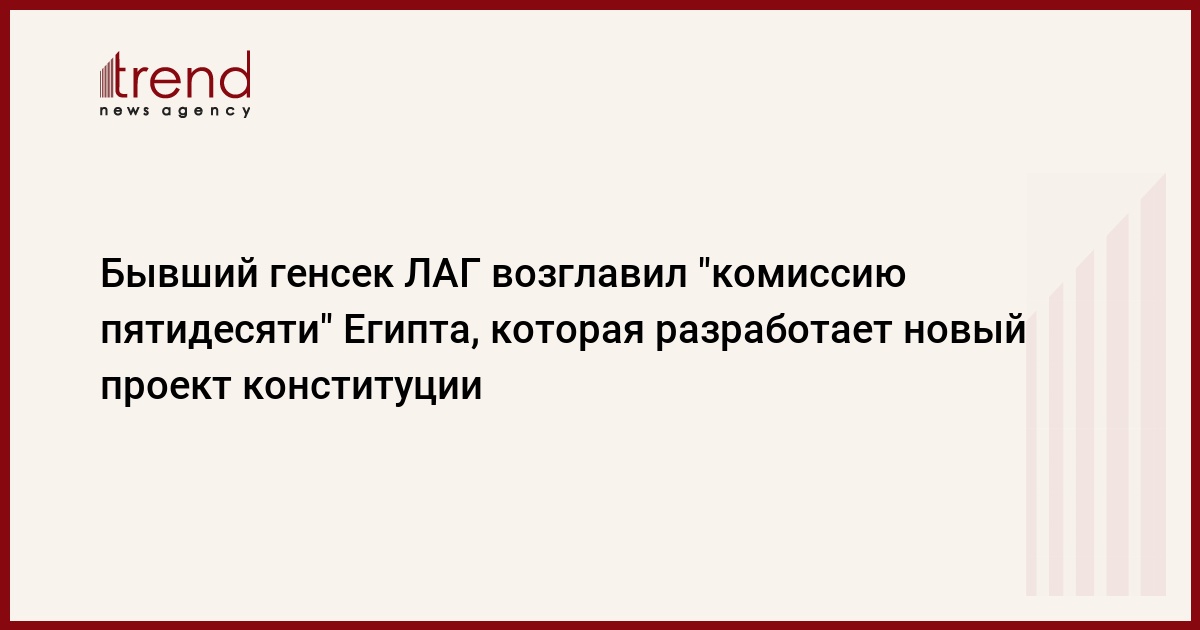 Экс-глава МИД Египта и бывший генеральный секретарь Лиги арабских государств Амр Муса был избран сегодня председателем "комиссии пятидесяти", которая займется разработкой нового проекта конституции АРЕ, передает ИТАР-ТАСС.