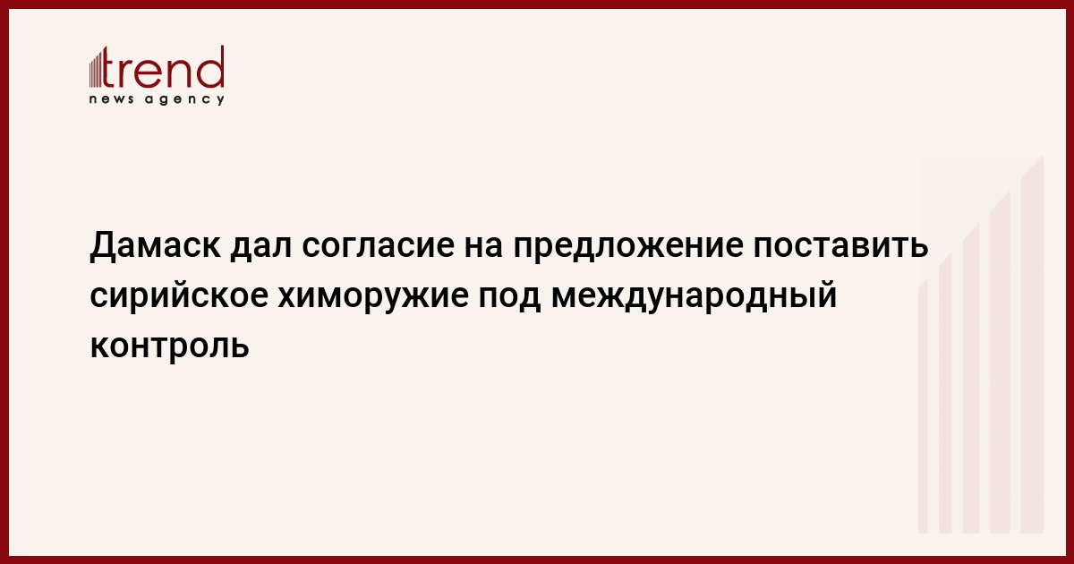 Сирия дала согласие на предложение российской стороны установить международный контроль за химоружием, которое находится на сирийской территории, заявил глава МИД Сирии Валид Муаллем во вторник на встрече с председателем Госдумы Сергеем Нарышкиным в Москве, пишет Интерфакс.