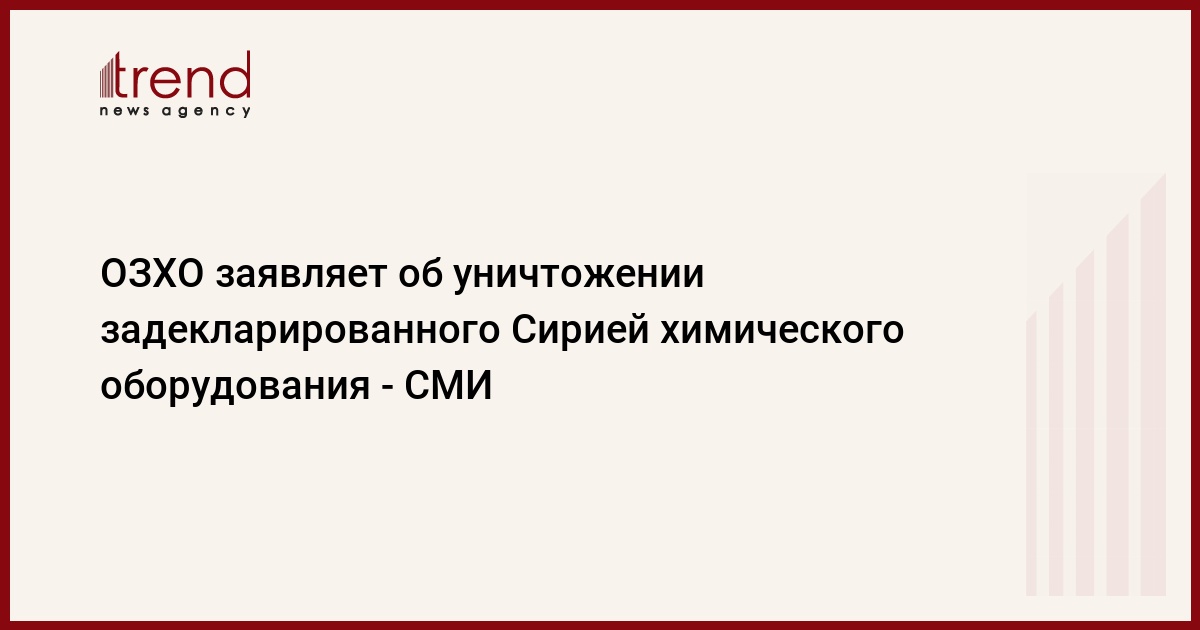 Из служебного документа ОЗХО, попавшего в распоряжение агентства, следует, что власти Сирии уничтожили все задекларированные сооружения и оборудования, которые могут быть использованы в процессе создания боевых отравляющих веществ.