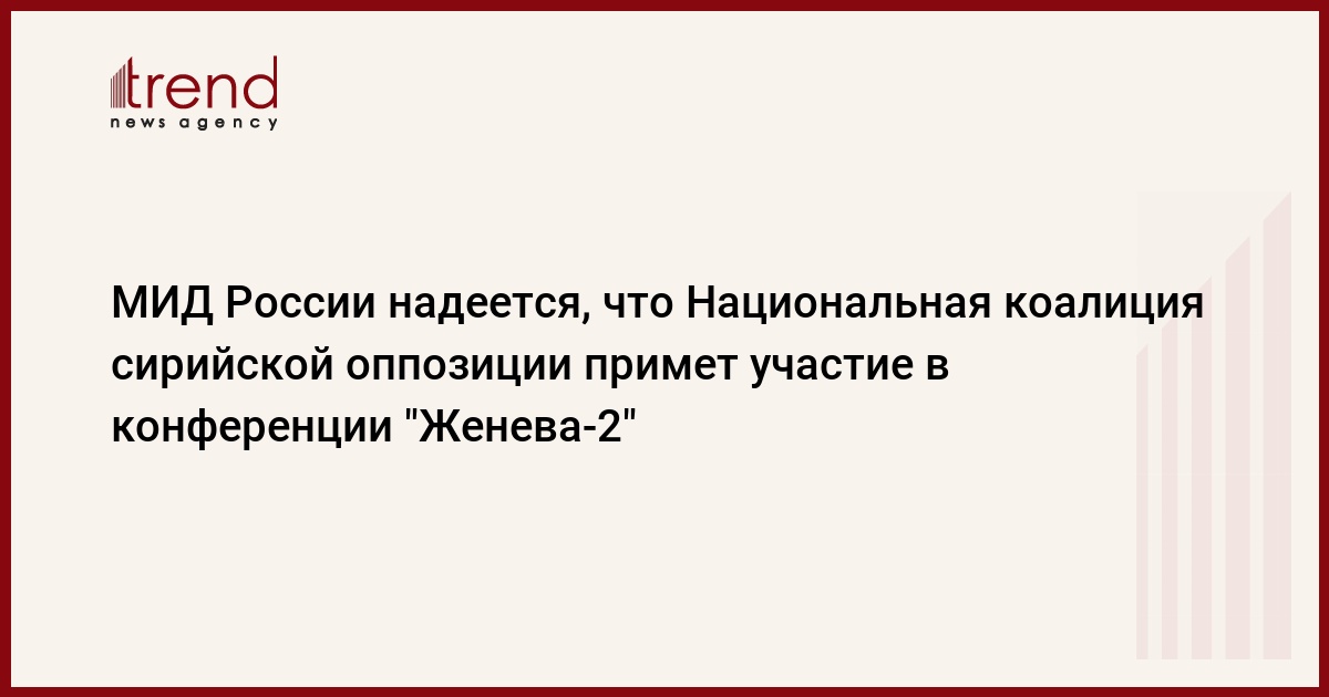 "Выражаем надежду, что Нацкоалиция реализует принятое в Стамбуле решение об участии в широком межсирийском диалоге на основе Женевского коммюнике, последовав примеру других сирийских сторон, в частности правительства Сирии, а также таких оппозиционных объединений, как Национальный координационный комитет, Высший совет курдов Сирии и других, выразивших готовность направить представителей в Женеву, не обставляя это какими-либо предварительными условиями", - заявили в российском внешнеполитическом ведомстве.