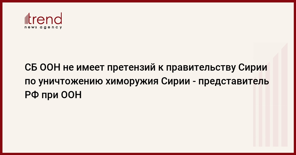 Совет Безопасности ООН не имеет претензий к правительству Сирии в выполнении обязательств по уничтожению химического оружия, сообщил российским журналистам в среду постоянный представитель России при ООН Виталий Чуркин, передает РИА Новости.