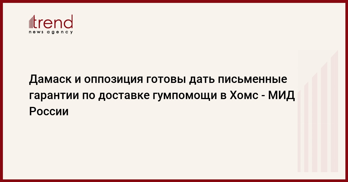 Правительство и оппозиция Сирии готовы предоставить письменные гарантии по доставке гуманитарной помощи в район Хомса, сообщил в интервью РИА Новости заместитель министра иностранных дел России Геннадий Гатилов.