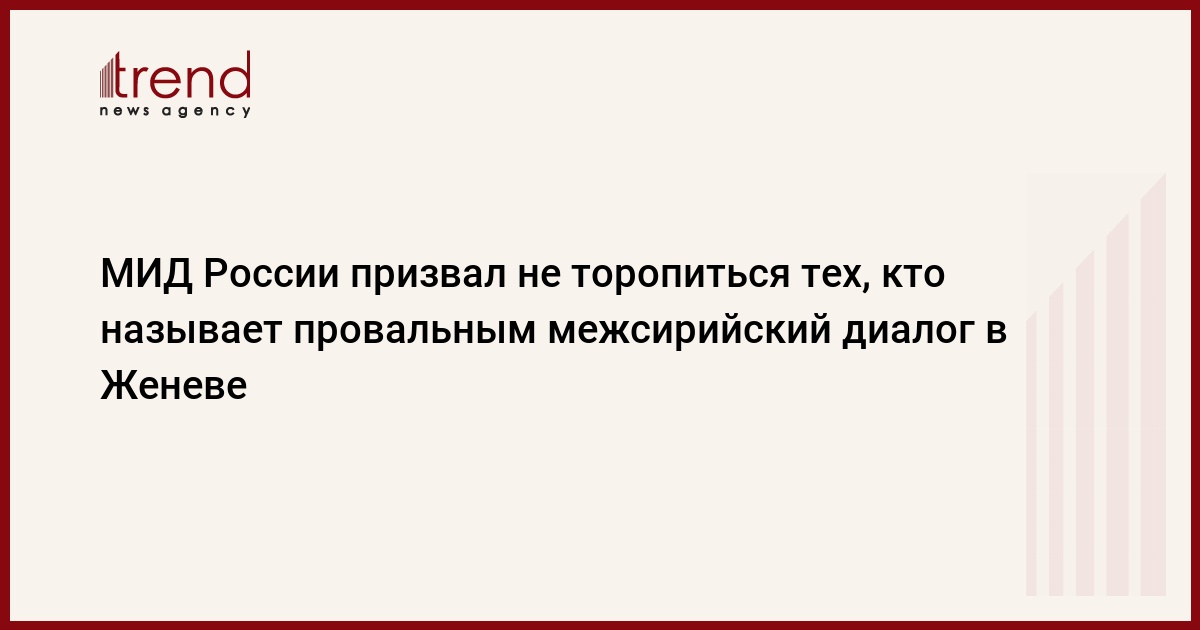 Москва призывает не торопится тех, кто называет провальными оба раунда межсирийских переговоров в Женеве, говорится в комментарии официального представителя МИД России Александра Лукашевича, передает РИА Новости.