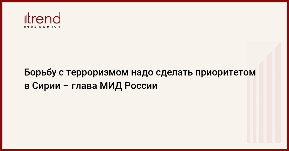 Борьба с терроризмом должна стать приоритетом для всех, кто искренне хочет урегулировать кризис в Сирии. Об этом заявил министр иностранных дел России Сергей Лавров, передает ИТАР-ТАСС.