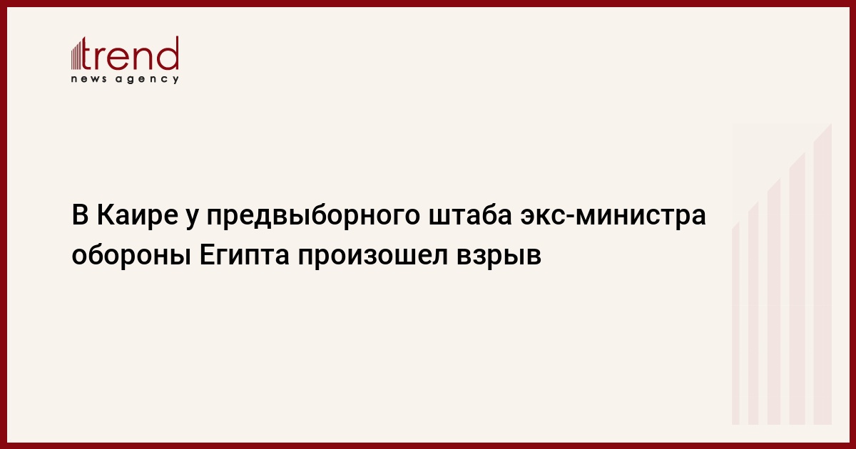 В результате взрыва у одного из предвыборных офисов кандидата в президенты Египта, экс-министра обороны страны Абдель Фаттаха ас-Сиси, ранения получили четыре человека, пишет ИТАР-ТАСС.