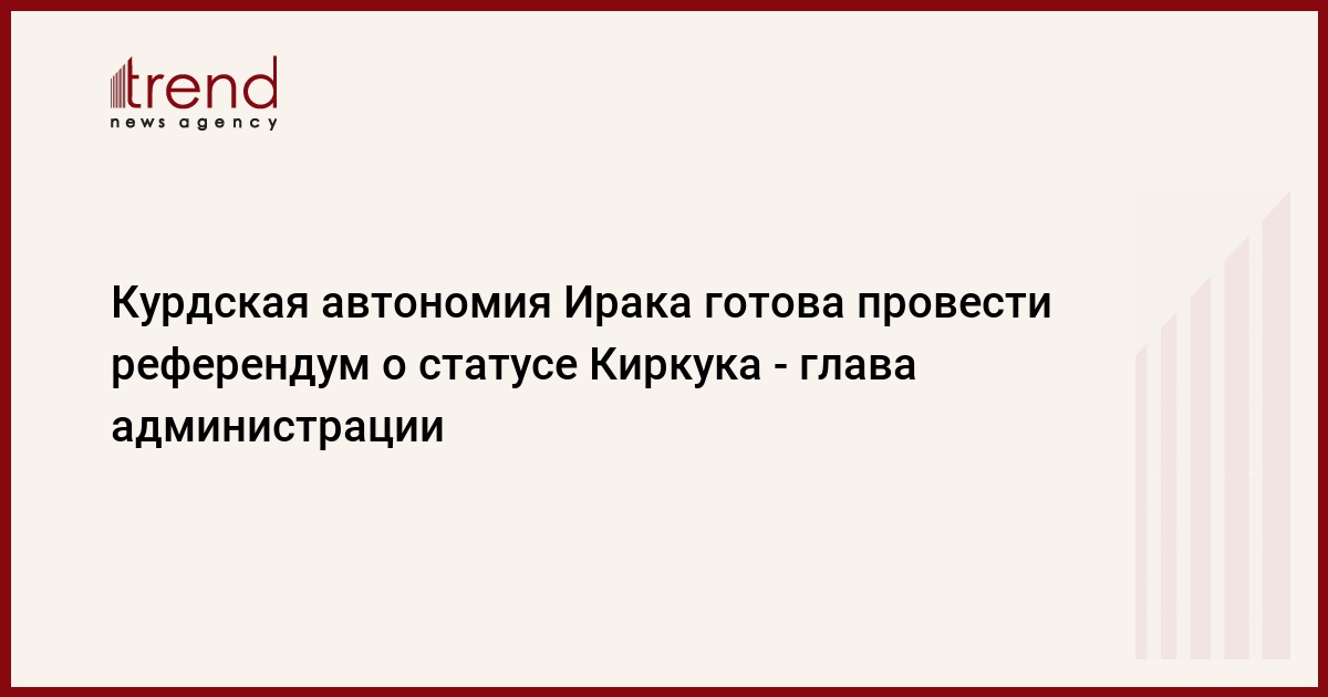 БАКУ /Trend/ - Курдская автономия Ирака готова провести референдум о статусе города Киркук. Об этом заявил глава администрации автономии Масуд Барзани, пишет в понедельник турецкая газета Sabah.