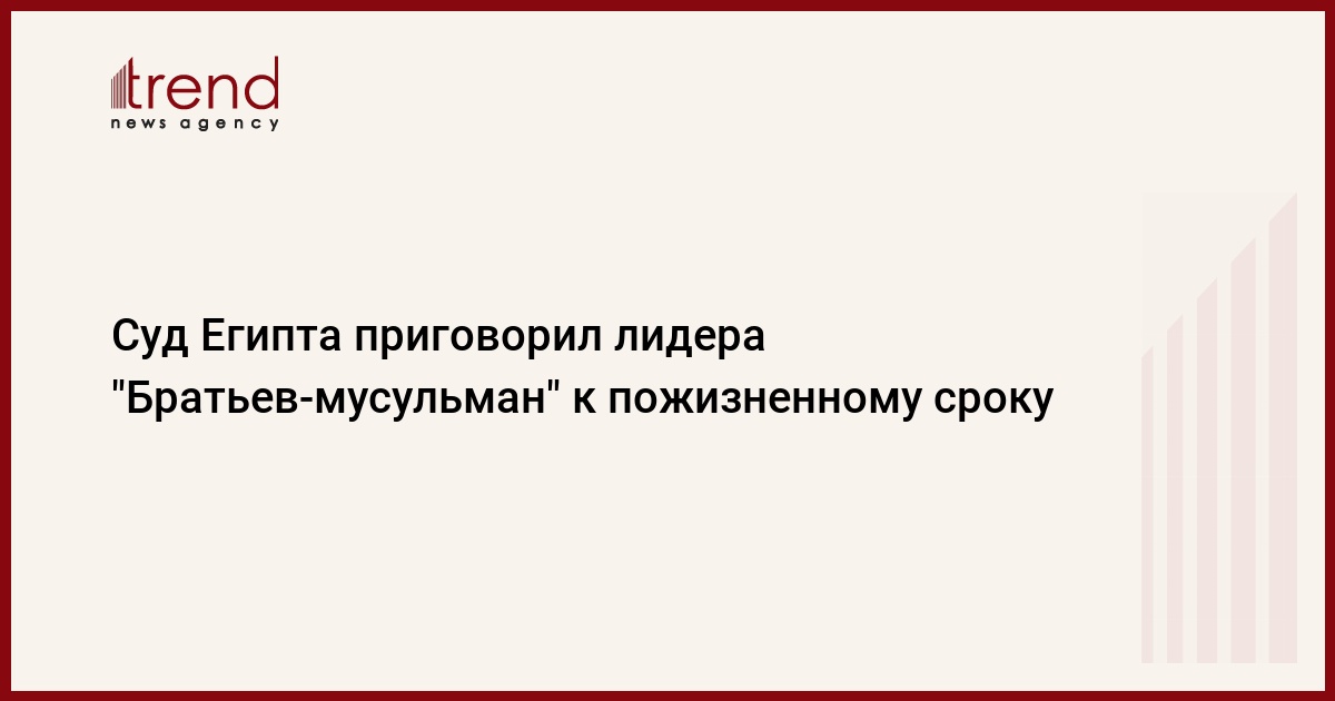 Суд в Египте приговорил лидера группировки "Братья-мусульмане" Мохаммеда Бадиа к пожизненному сроку, передает РИА Новости со ссылкой на AFP.