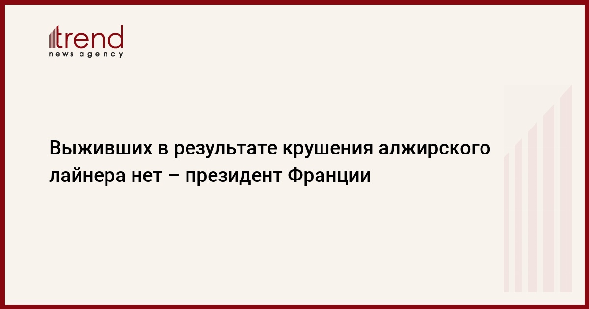 Выживших в результате крушения алжирского авиалайнера в Мали нет, сообщил в пятницу президент Франции Франсуа Олланд, передает РИА Новости.
