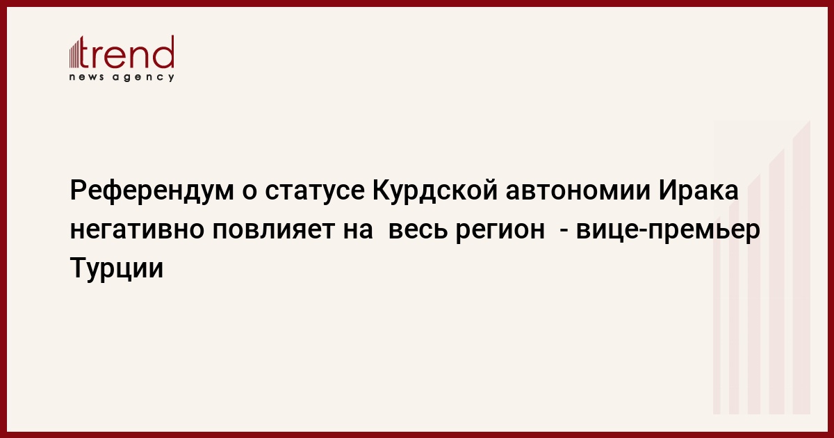 БАКУ /Trend/ - Референдум о статусе Курдской автономии Ирака негативно повлияет на весь регион, сказал вице-премьер Турции Нуман Куртулмуш по итогом заседания совета министров в понедельник.