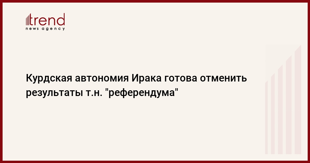 БАКУ /Trend/ - Курдская автономия Ирака готова отменить результаты т.н. "референдума о независимости", который состоялся 25 сентября. Об этом сказал глава автономии Масуд Барзани, сообщают в среду иракские СМИ.