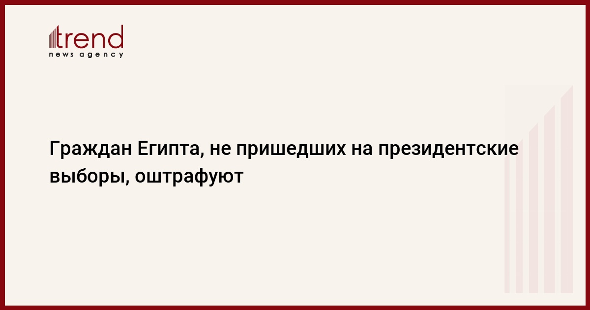 "Закон гласит, что каждый избиратель, который откажется от участия в голосовании на президентских выборах, может быть оштрафован на сумму не выше 500 египетских фунтов (порядка 30 долларов)", — сообщил он.