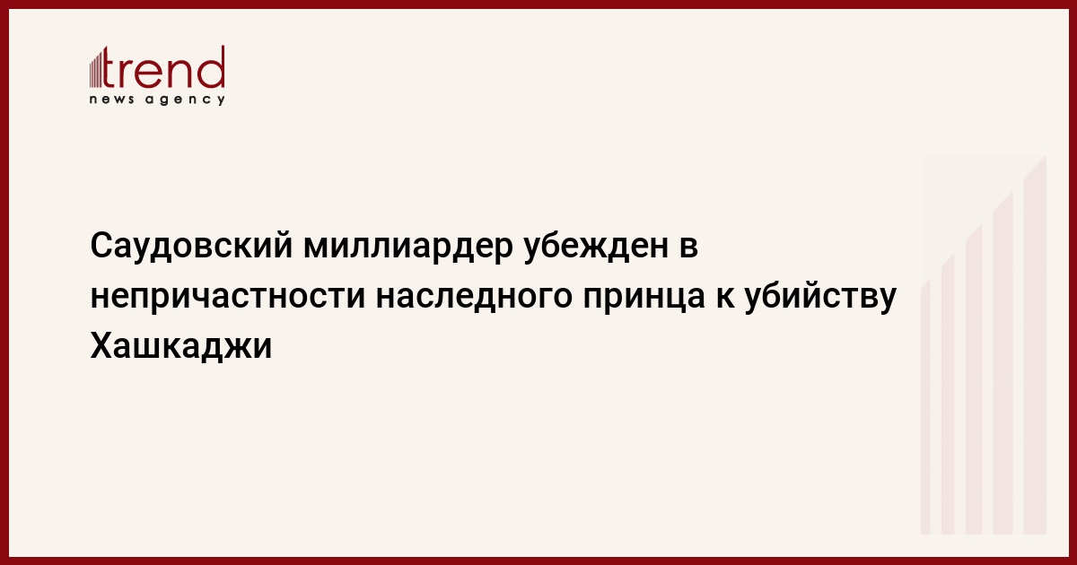 Саудовский миллиардер, принц Аль-Валид бен Таляль убежден, что расследование убийства журналиста Джамаля Хашкаджи, которое проводят власти королевства, подтвердят полную непричастность наследного принца Мухаммеда бен Сальмана к произошедшему. Об этом, как передает ТАСС, бизнесмен заявил в воскресенье в интервью телеканалу Fox News.