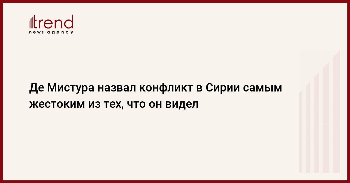 Спецпосланник генерального секретаря ООН по Сирии Стаффан де Мистура, выступая в воскресенье на панельной сессии Дохийского форума, назвал войну в Сирии самым жестоким из 22 конфликтов, которые он видел, и отметил, что считает необходимым стремиться к правосудию над виновными в насилии, передаёт Trend со ссылкой на РИА Новости.