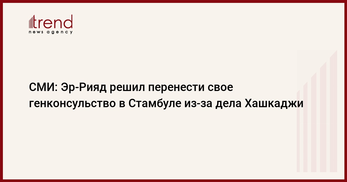 Саудовская Аравия приняла решение переместить свое генеральное консульство в Стамбуле в другое здание в связи с убийством саудовского журналиста Джамаля Хашкаджи. Об этом сообщает во вторник телеканал Haberturk, передает Trend со ссылкой на ТАСС.