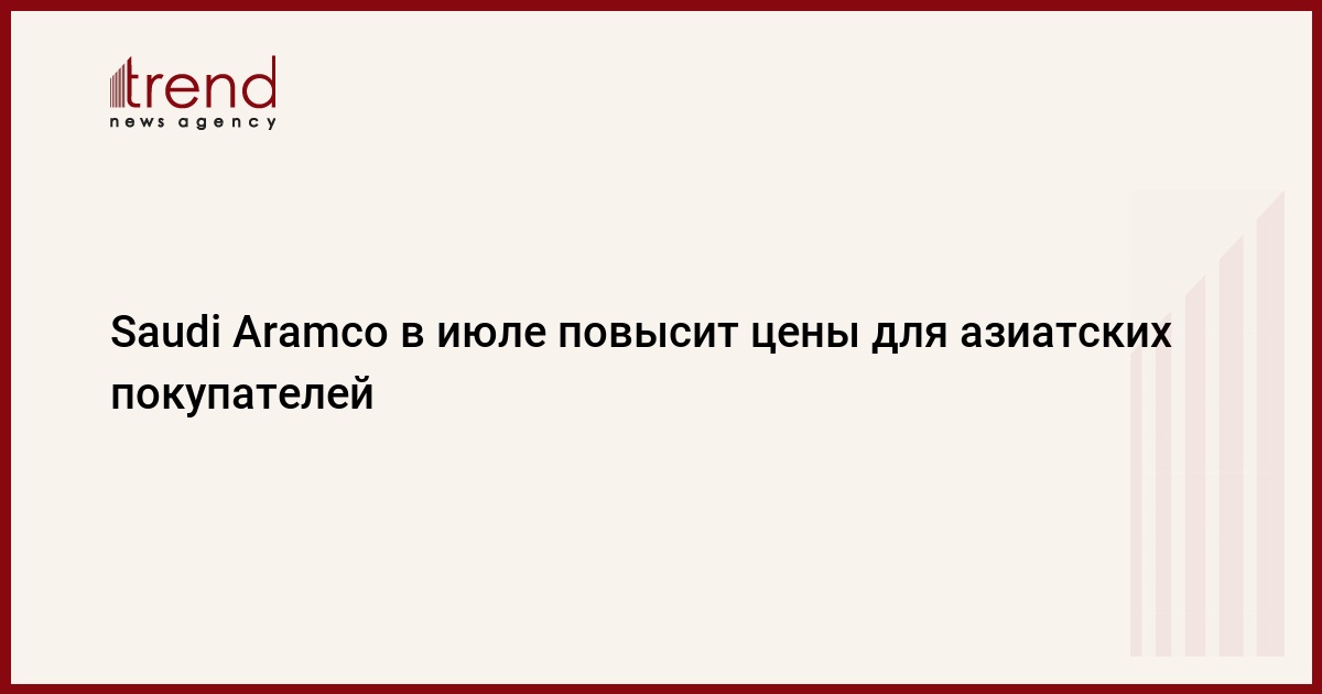 Саудовская Аравия в июле поднимет цены на нефть большинства сортов для азиатских покупателей. Как передает Trend со ссылкой на Интерфакс, об этом сообщила госкомпания Saudi Aramco.