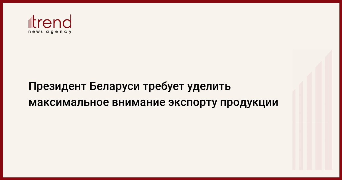 Президент Беларуси Александр Лукашенко требует максимальное внимание уделить экспорту продукции. Об этом Александр Лукашенко заявил во вторник на совещании по актуальным вопросам развития страны, передает Белта.