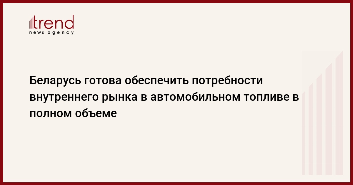 Концерн "Белнефтехим" готов обеспечить потребности внутреннего рынка в автомобильном топливе в полном объеме, сообщил сегодня журналистам заместитель председателя концерна Андрей Бунаков, передает Trend со ссылкой на БЕЛТА.