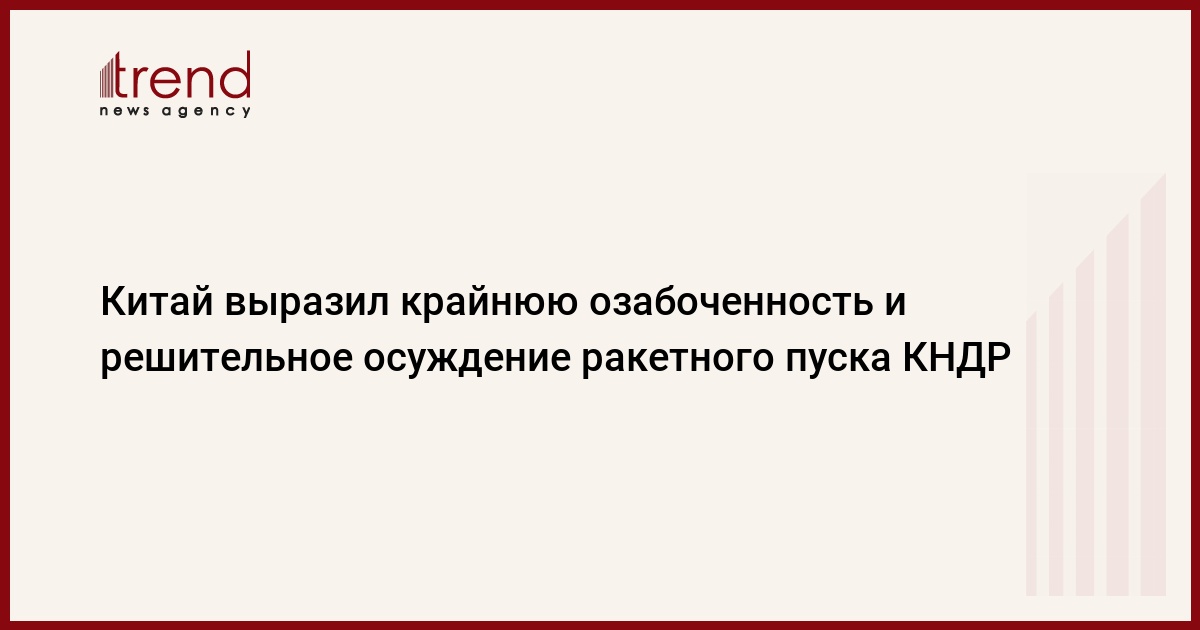 БАКУ /Trend/ - Китай выражает крайнюю озабоченность в связи с недавним ракетным испытанием КНДР и решительно осуждает подобные испытания в этой стране, поскольку они противоречат соответствующим резолюциям СБ ООН. Об этом заявил официальный представитель МИД КНР Гэн Шуан на прошлой неделе на ежедневной ведомственной пресс-конференции.