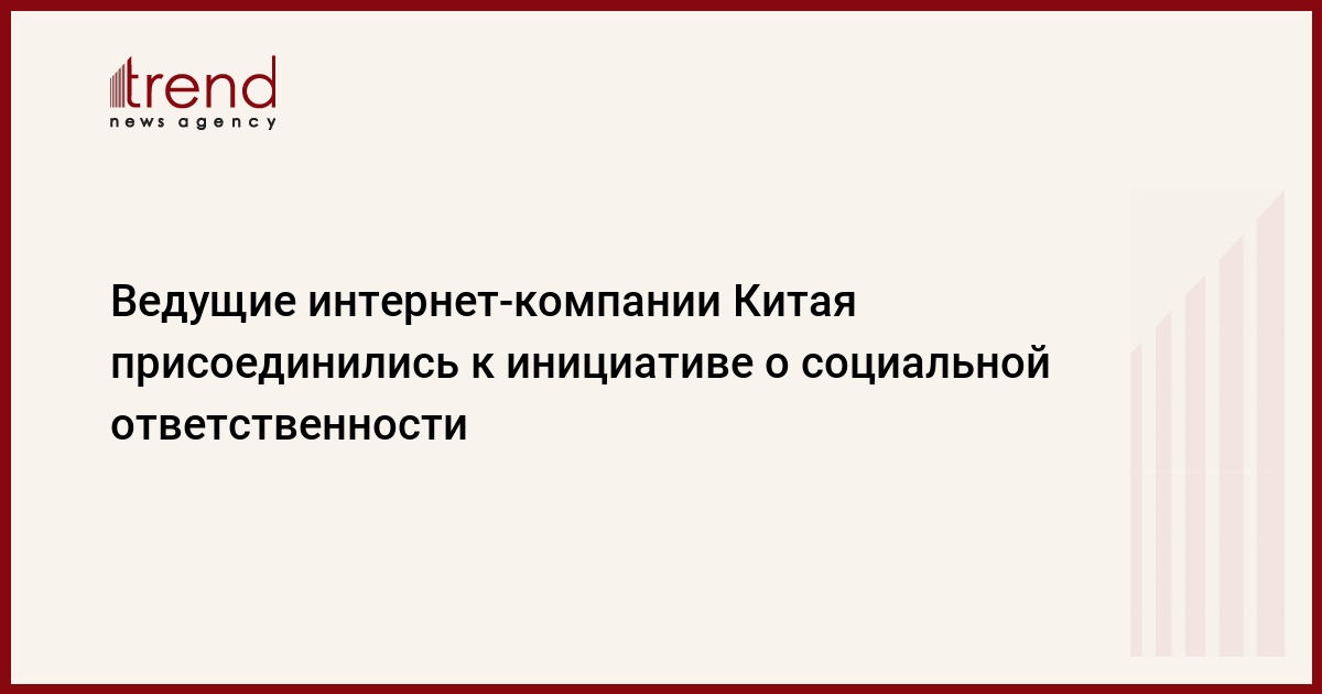 36 интернет-компаний Китая, включая таких гигантов, как Алибаба (Alibaba), Тэнсент (Tencent) и Байду (Baidu), присоединились к инициативе о реализации своей корпоративной социальной ответственности. Соответствующий документ был подписан в Пекине в среду, 19 декабря, передаёт Trend со ссылкой на Синьхуа.