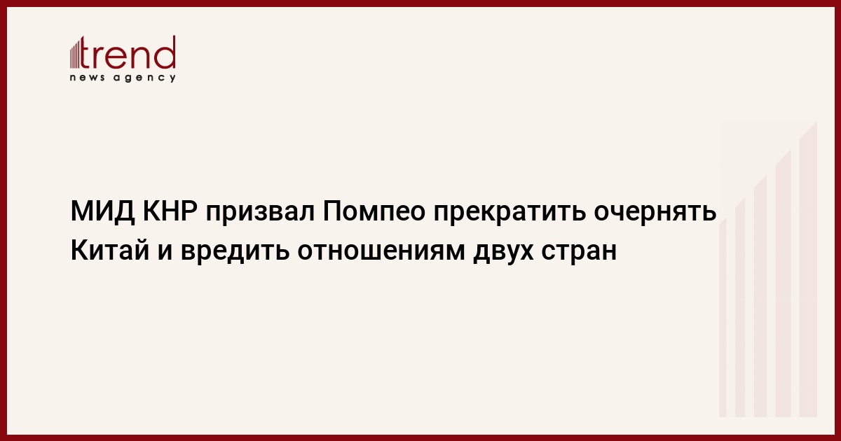 Китай призывает госсекретаря США Майкла Помпео прекратить очернять политический строй КНР и вредить развитию двусторонних отношений. Так официальный представитель МИД КНР Гэн Шуан во вторник в ходе онлайн-брифинга прокомментировал призыв шефа американской дипломатии к губернаторам страны осторожно вести бизнес с Китаем, Trend со ссылкой на ТАСС.